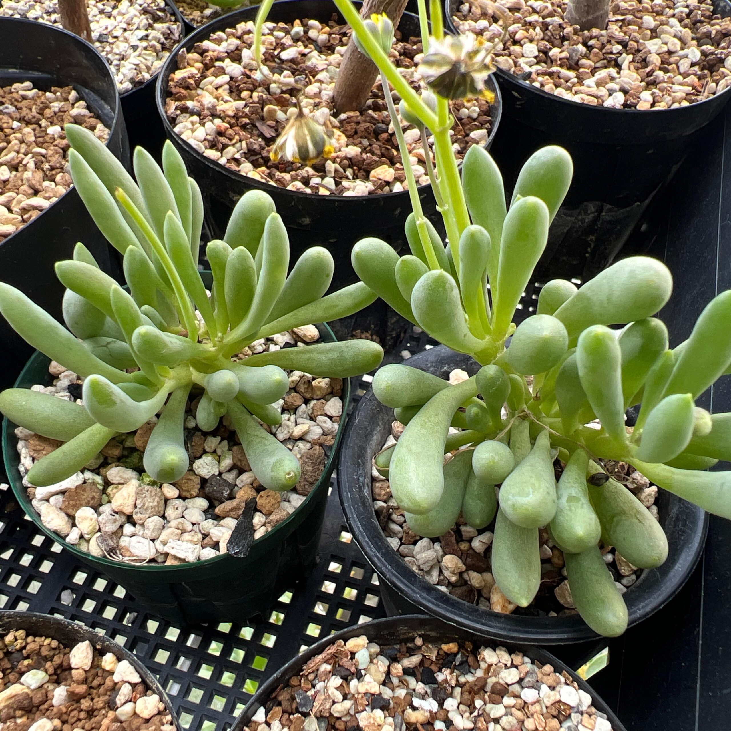 丸みを帯びた多肉質の葉が特徴的で、早ければ実生から半年程で黄花を咲かせます。塊茎の成長は非常にゆっくり。